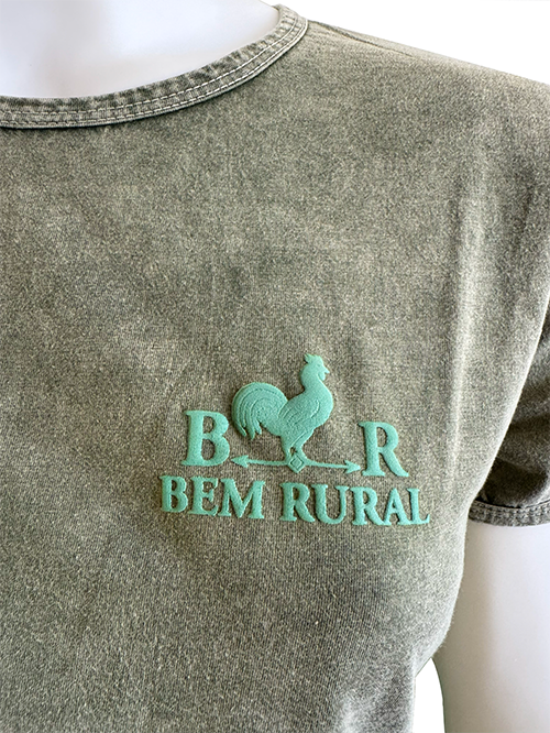 • Elegância Tom sobre Tom: O bordado do galo e da marca Bem Rural em verde escuro sobre o fundo musgo traz uma sofisticação discreta, ideal para quem valoriza os detalhes.