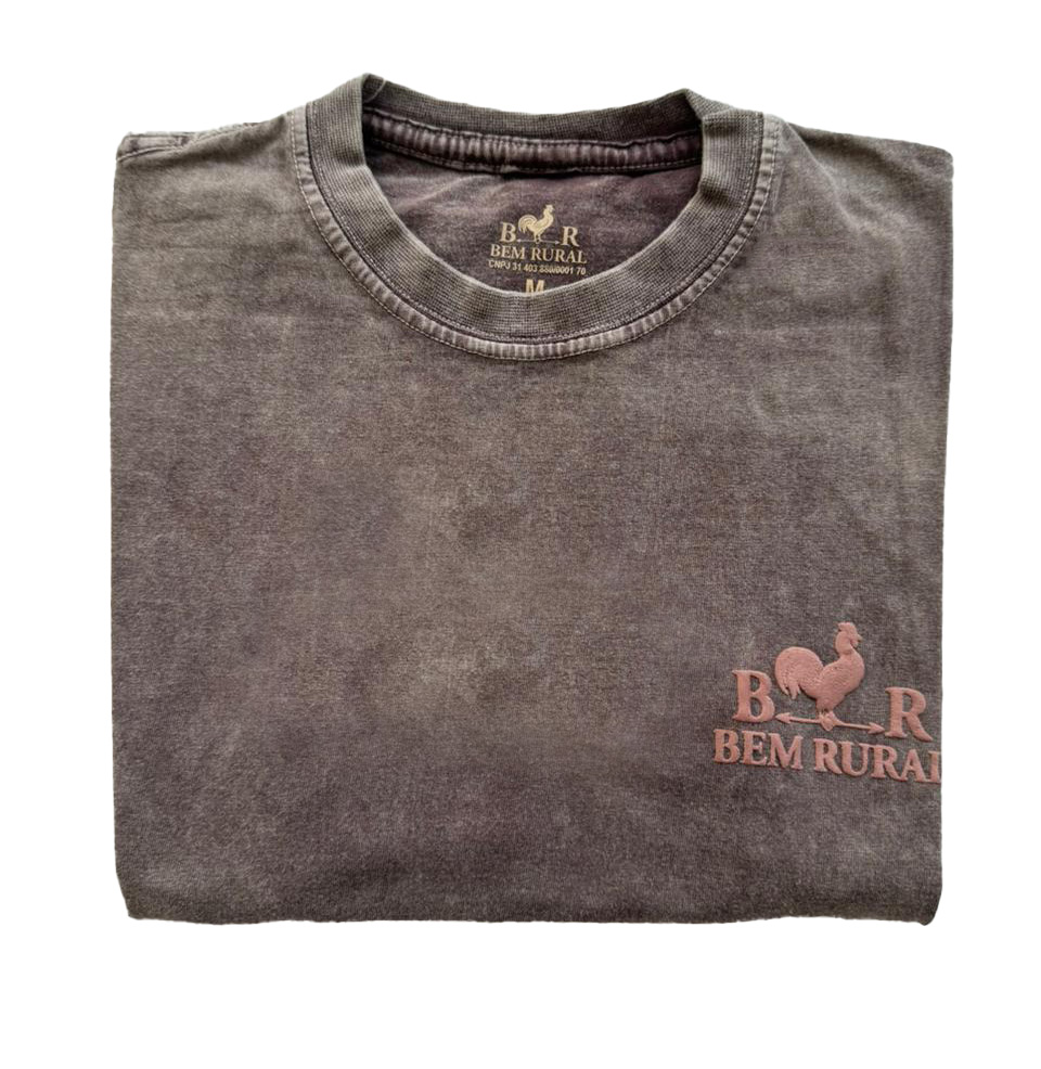 A Camiseta Infantil Bem Rural Marrom Café traz a robustez do campo para o guarda-roupa dos pequenos. Com um acabamento stonewashed exclusivo, a peça possui um visual “vivido” e autêntico, garantindo um toque extremamente macio que não incomoda a pele. O logotipo bordado em tons terrosos reforça a identidade agro com elegância. É a escolha perfeita para o dia a dia na fazenda ou para um passeio com estilo e resistência.